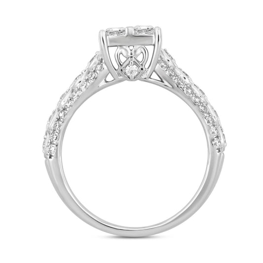 LADIES RING 1 1/2CT ROUND/PRINCESS DIAMOND 14K WHITE GOLD