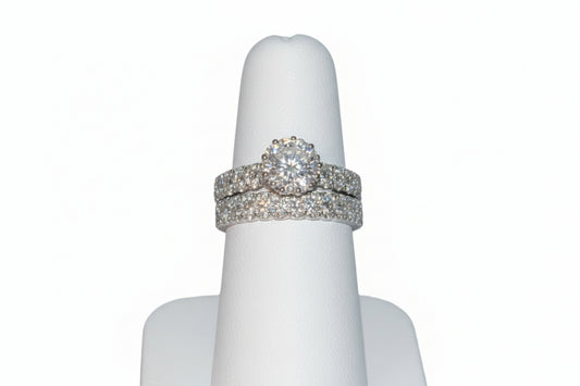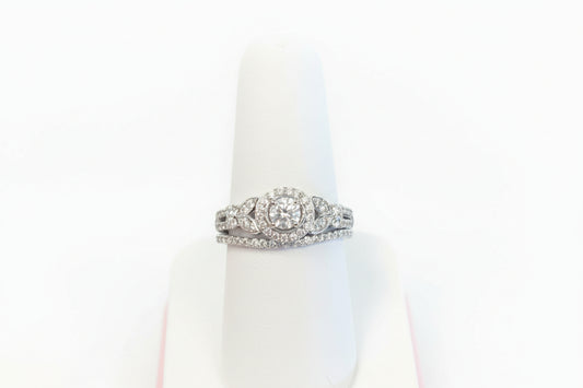 925 Silver Round with Floral design Ring Set cz