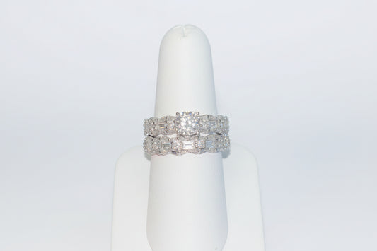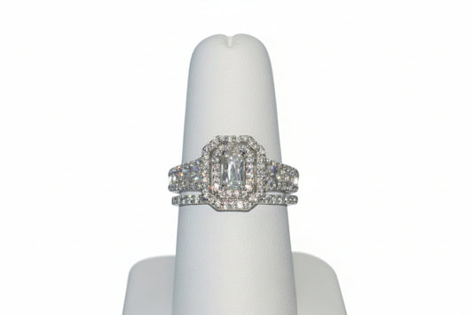 925 Silver Emerald Cut Ring Set cz
