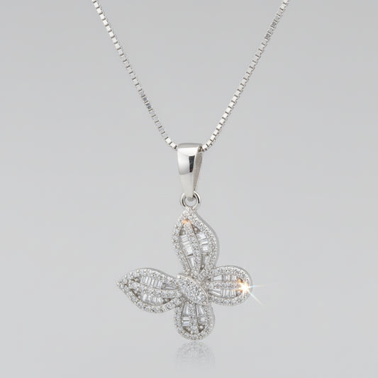 925 Silver Tilted Butterfly Necklace cz