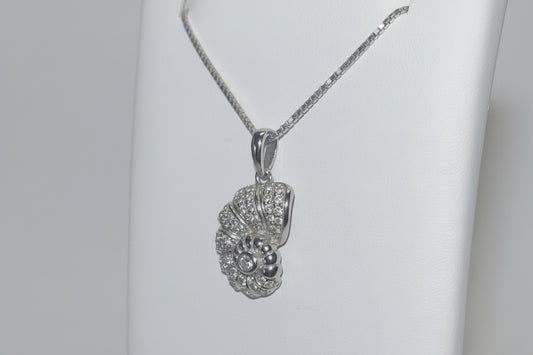 925 Silver Shell Necklace cz