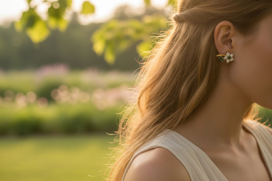 14k Yellow Gold Emerald Flower Earings cz