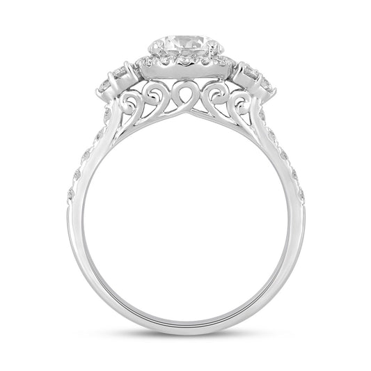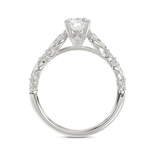 Ladies Ring 1 1/2CT Round/Oval/Marquise Diamond 14k White Gold (Center Stone Oval Diamond 1CT)