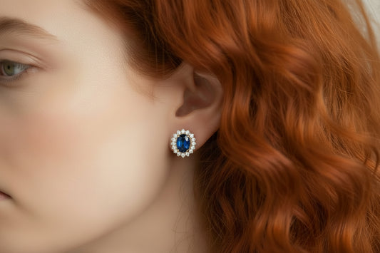 14k YG Sapphire Oval Flower Birthstone Earings cz