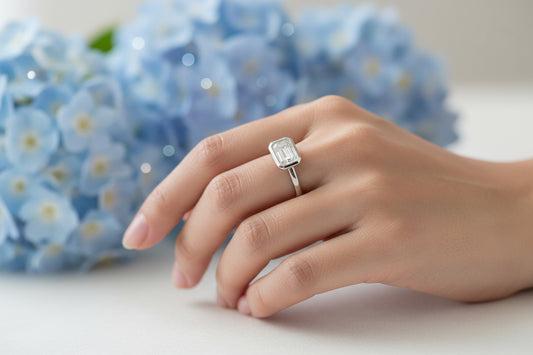 14k White Gold Emerald Cut LAB Ring (Center EM 1.55CTR) Total 1.76CTW