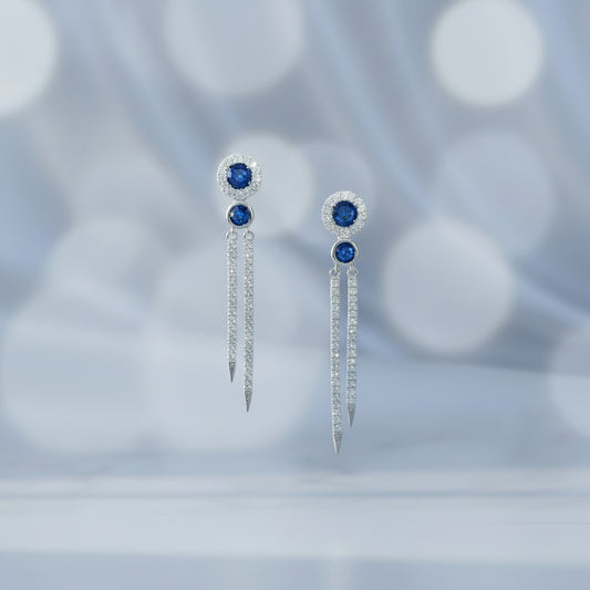 14k White Gold Sapphire Dangly Birthstone Earings DIAMOND 0.33CTW