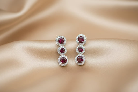 14k Yellow Gold Birthstone Ruby Dangly Earings DIAMOND 0.33CTW