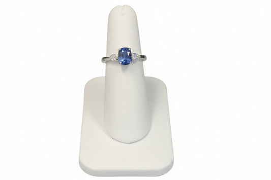 10k White Gold Sapphire Cushion Cut DIAMOND 0.40CTW Birthstone Ring