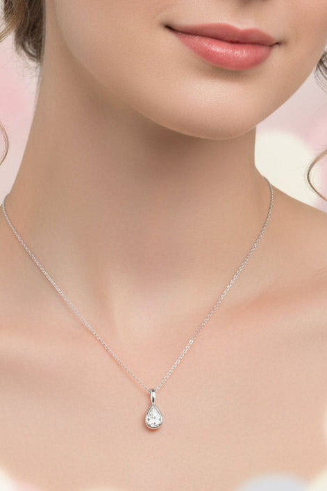 10k White Gold Pear Bezel LAB DIAMOND 0.11CTW Necklace