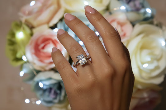 14K YELLOW GOLD LAB 3 1/2CT ROUND/BAGUETTE/RADIANT DIAMOND LADIES RING