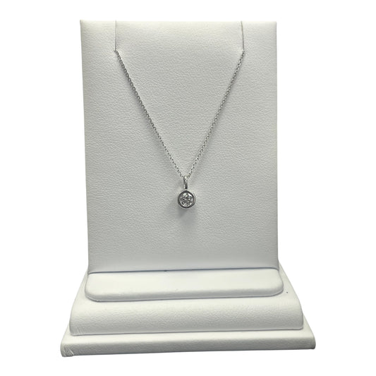 10k White Gold Round Bezel LAB DIAMOND 0.17CTW Necklace