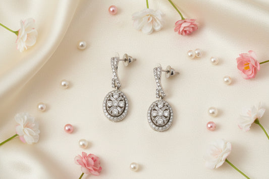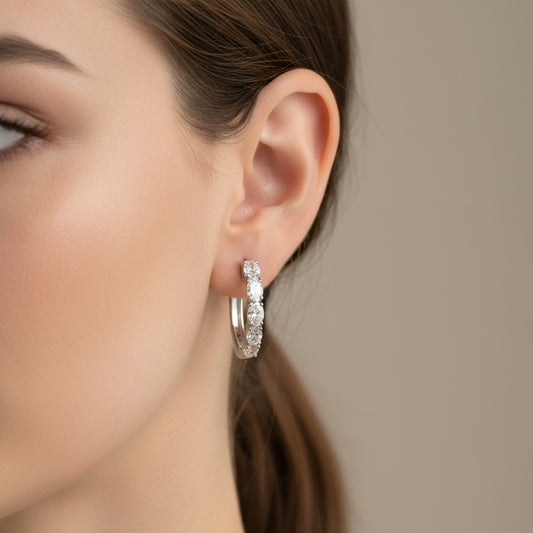 14k White Gold LAB DIAMOND 2.00CTW Oval Hoop Earing