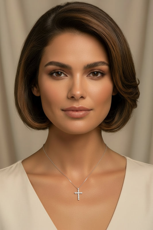 14k White Gold LAB Round Cross DIAMOND 1.00CTW Necklace