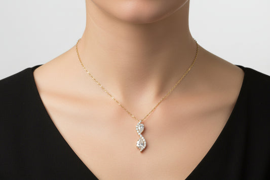 14k Yellow Gold LAB Round/Pear DIAMOND 1.00CTW Necklace