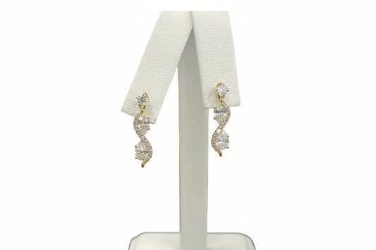 14k Yellow Gold LAB Round/Pear Dangly Earings DIAMOND 1.50CTW
