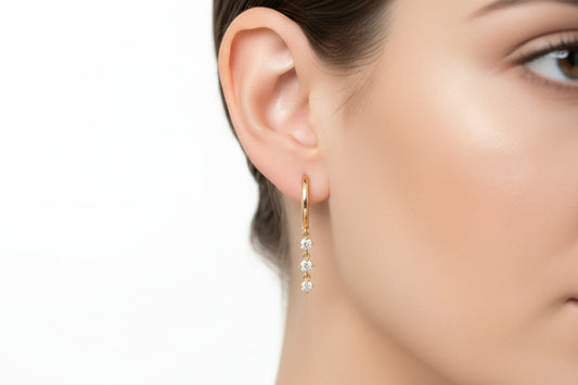 10k Yellow Gold Round LAB DIAMOND 0.31CTW Dangly Hoops