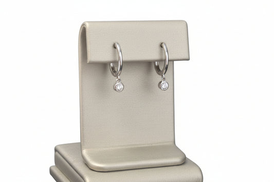 10k White Gold LAB Bezel DIAMOND 0.20CTW Dangly Hoops