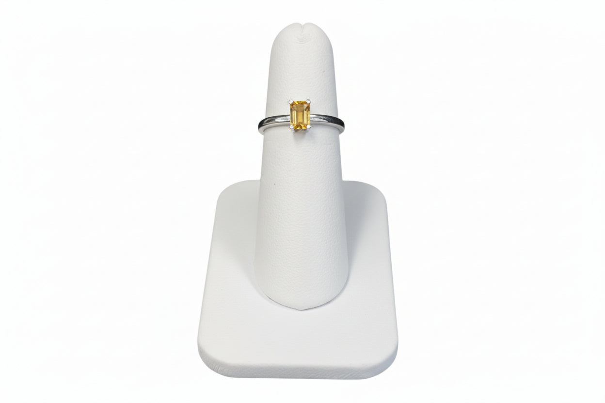 10k White Gold Emerald Cut/ Citrine Birthstone Ring